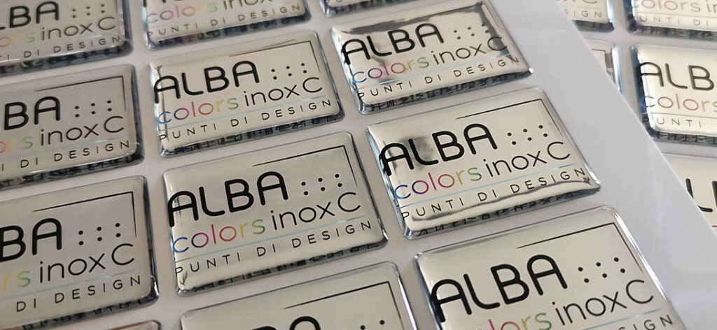 Produzione etichette resinate e adesivi resinati con effetto argento a specchio